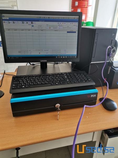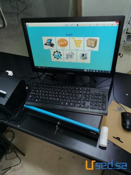 ( جهاز حاسب الى +برنامج المخازن والمبيعات +درج الكاشير الكترونى + قارئ الباركود + طابعه الفواتير ) ب 3400 ريال