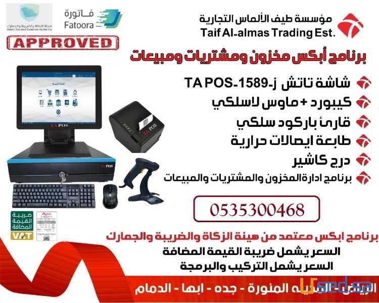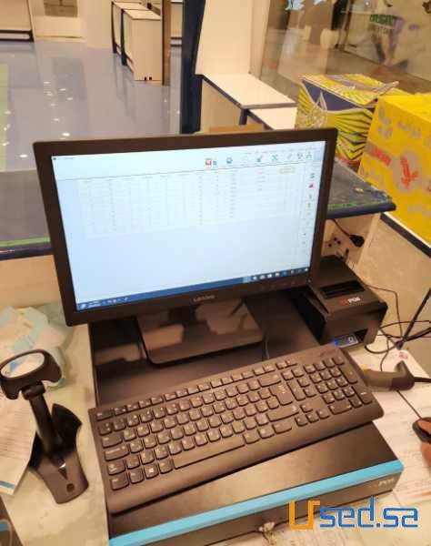 الجهاز شامل شاشه تاتش + كيبورد سلكي + ماوس لاسلكي + قارئ باركود سلكي + طابعه ايصالات حراريه + درج كاشير+ برنامج اداره المخزون و المشتريات و المبيعات....