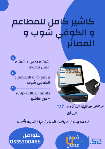 عرض خاص لكاشير كامل للمطاعم و الكوفي شوب و العصائر شامل جميع اجهزه الكاشير مع برنامج اداره المطاعم و المحلات