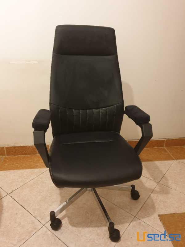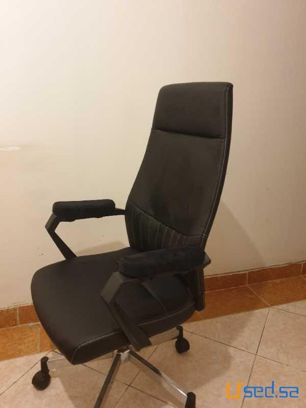 كرسي مكتب أنيق من الجلد الأسود مع تطريز بيج