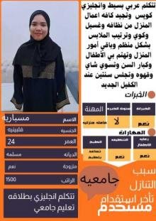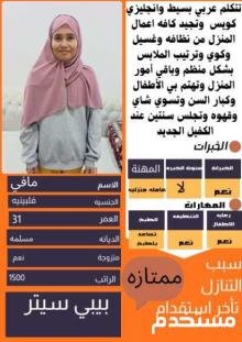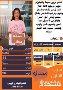 فلبينيه تجيد بعض الطبخ وجميع الاعمال …
