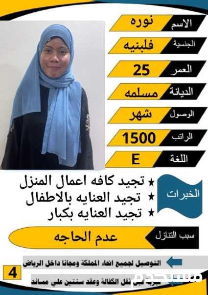يتوفر لدينا نخبه من امهر العاملات المنزليه من جميع الجنسيات ((فلبين -اندونيسيا-بنجلاديش-كينيا-اوغندا-اثيوبيا-بورندي -سواقين ))
