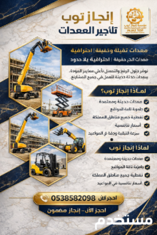 انجاز توب لتاجير المعدات الثقيلة والخفيفة للتواصل 0538582098