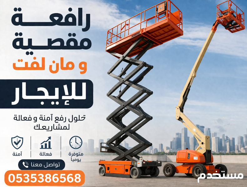 - مان لفتات (Man Lifts / Boom Lifts) بمختلف الارتفاعات