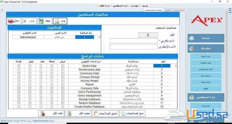 قدم لكم احدث برامج طباعة الشيكات APEX CHEQUES برنامج الشيكات بالسهوله في التعامل نظام ابكس لتصميم وطباعة الشيكات مواصفات البرنامج